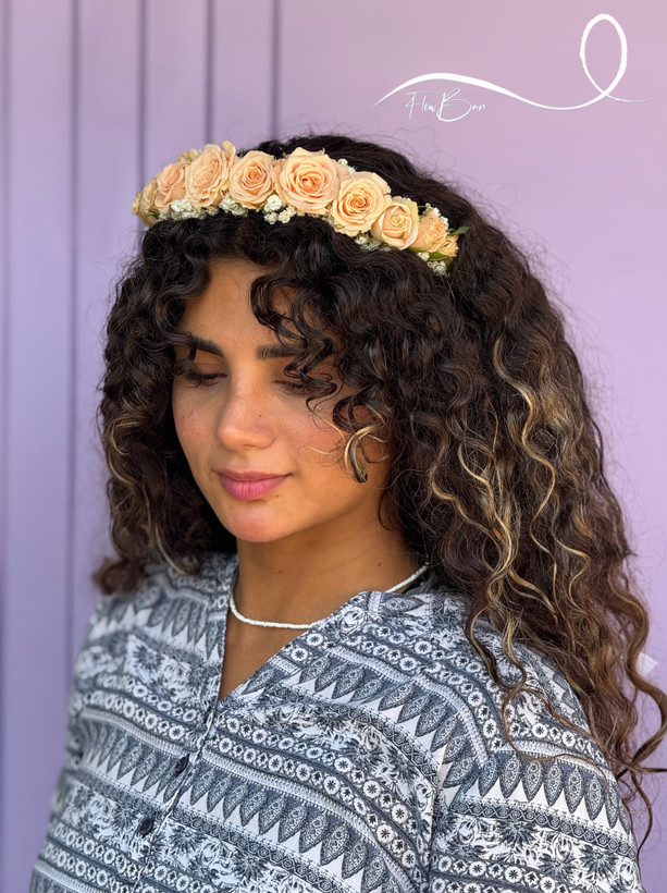 تاج عروس با گل طبیعی فلوبار