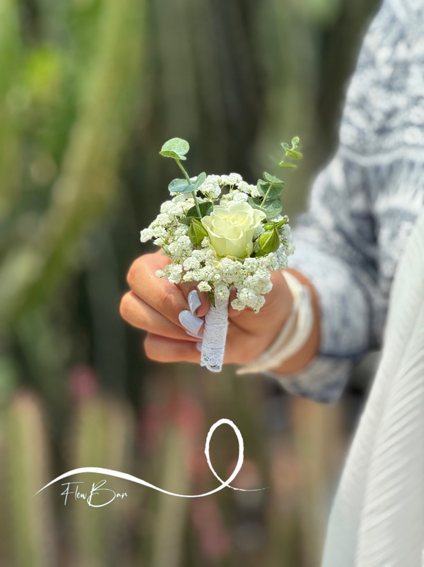 گل جیب کت داماد یا همون بوتونیر با گل طبیعی رز مینیاتوری، ژیپسوفیلا و اکالیپتوس✨