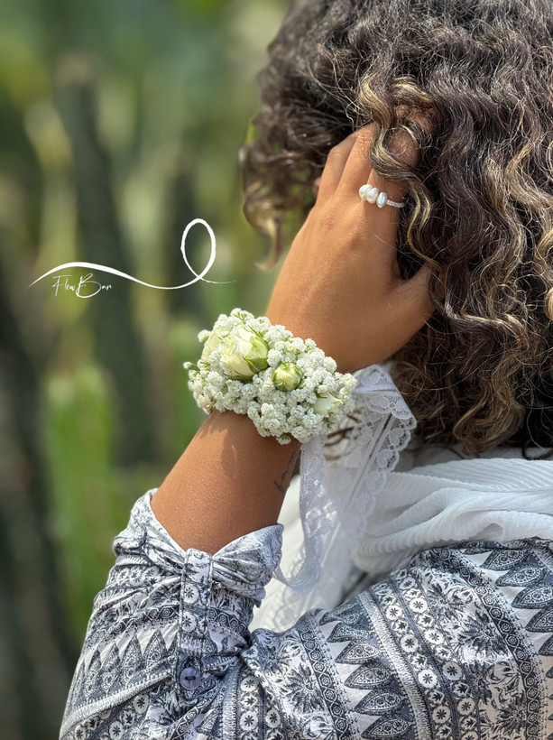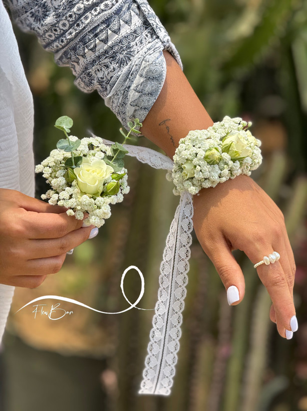 دستبند عروس و بوتونیر داماد با گل طبیعی فلوبار