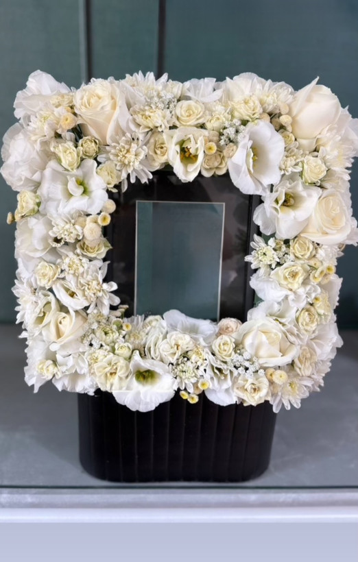 گل آرایی قاب عکس داخل باکس گل ترحیم🥀