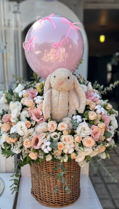باکس گل و عروسک و بادکنک نوزادی دخترونه فلوبار