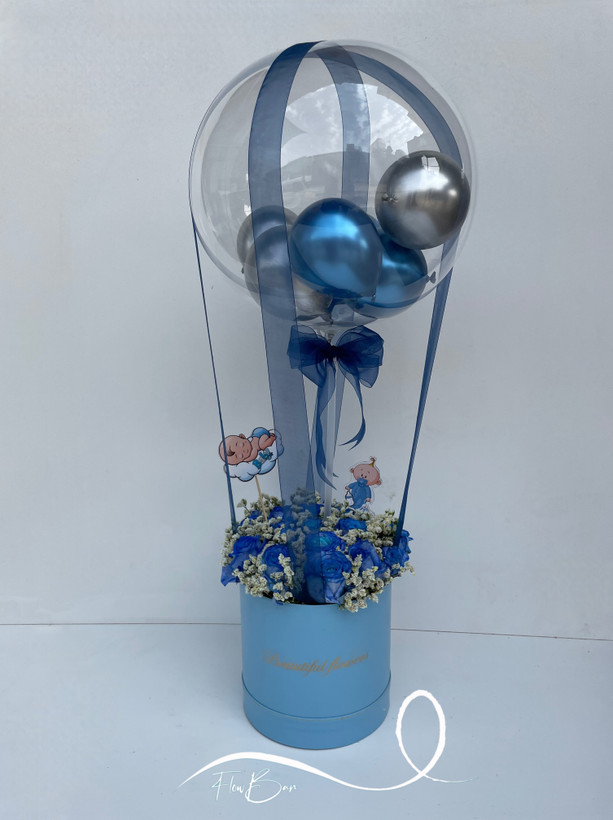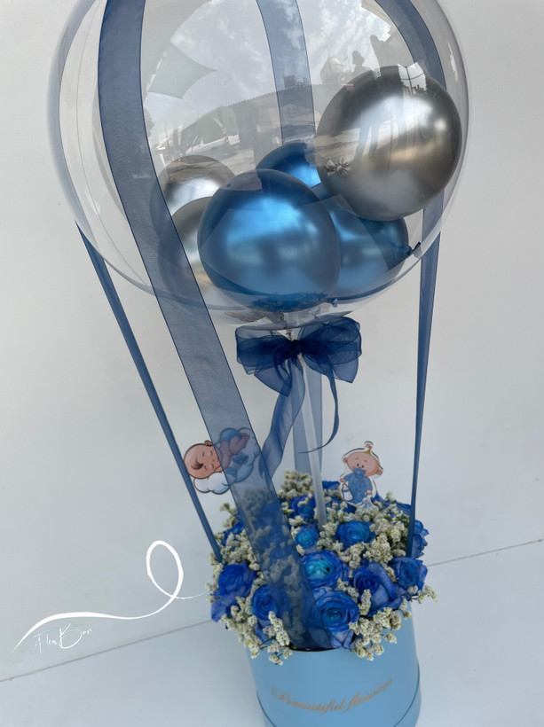 باکس گل و بادکنک نوزادی پسرونه فلوبار