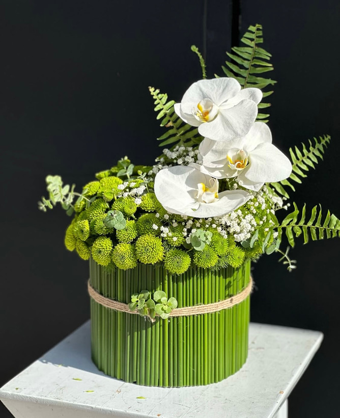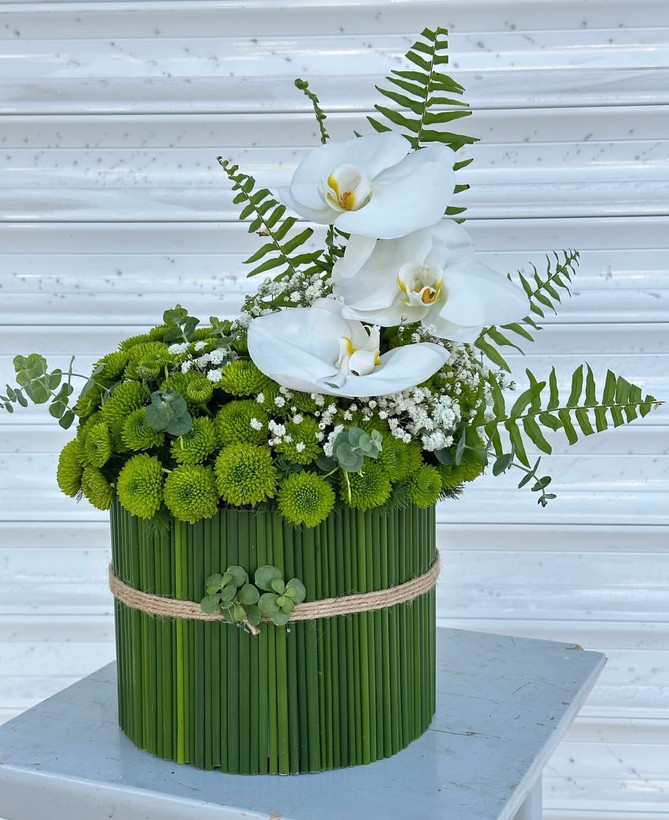 با ترکیب گلهای سبز داودی، اکالیپتوس، سرخس و ارکیده🤍💚