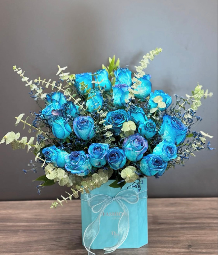 یه باکس گل با ترکیب جذاب رنگ آبی🩵