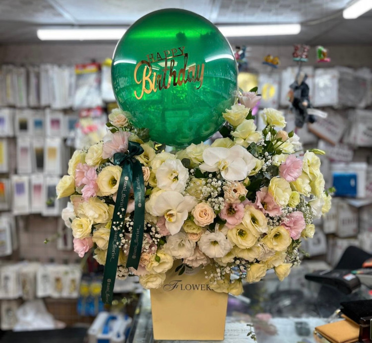 باکس گل جذاب به همراه بادکنک💚🩷
