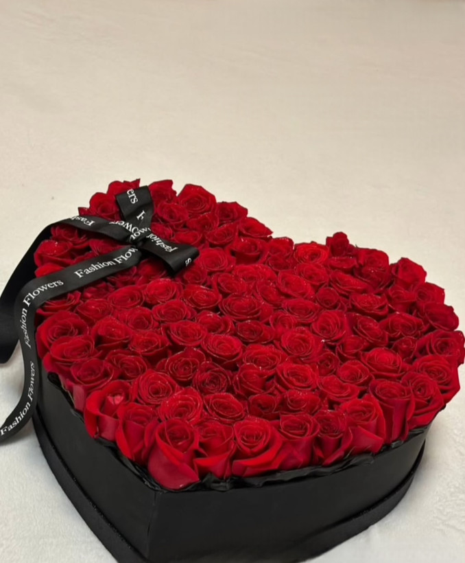 باکس قلبی با ۱۰۰ شاخه گل رز قرمز❤️🖤