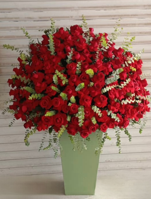 باکس VIP با گل رز قرمز و اکالیپتوس💚❤️