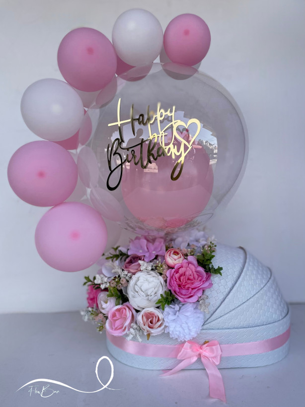 باکس گل گهواره ای نوزادی دخترونه با گل مصنوعی فلوبار
