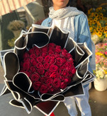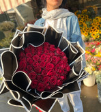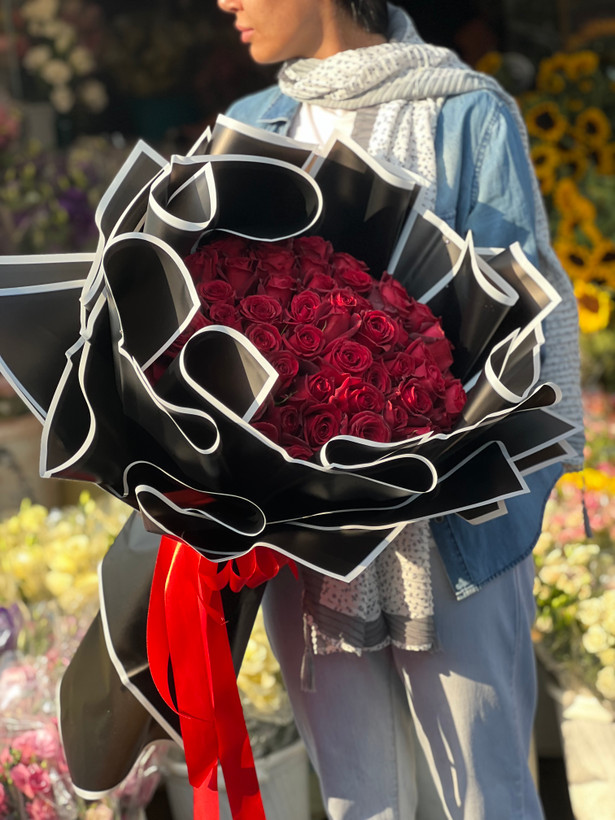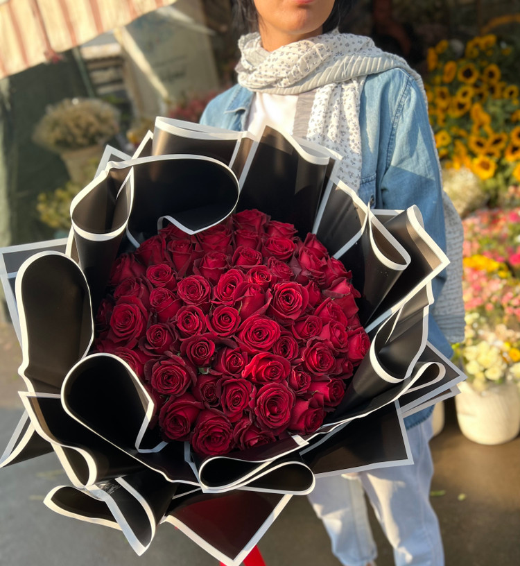 دسته گل ۶۰ شاخه رز قرمز فلوبار