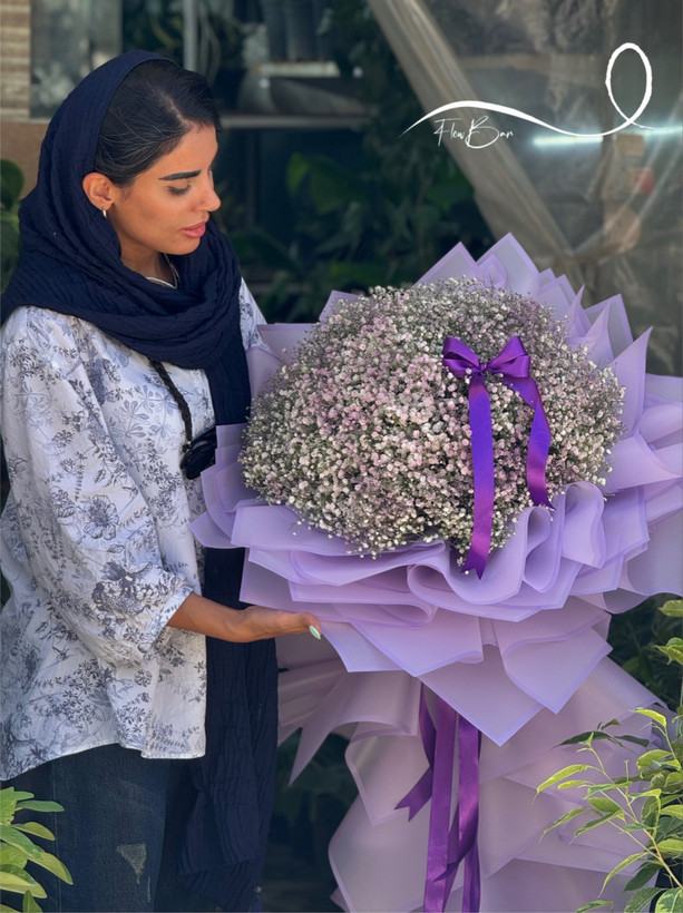 دسته گل سورپرایزی ژیپسوفیلا بنفش💜
