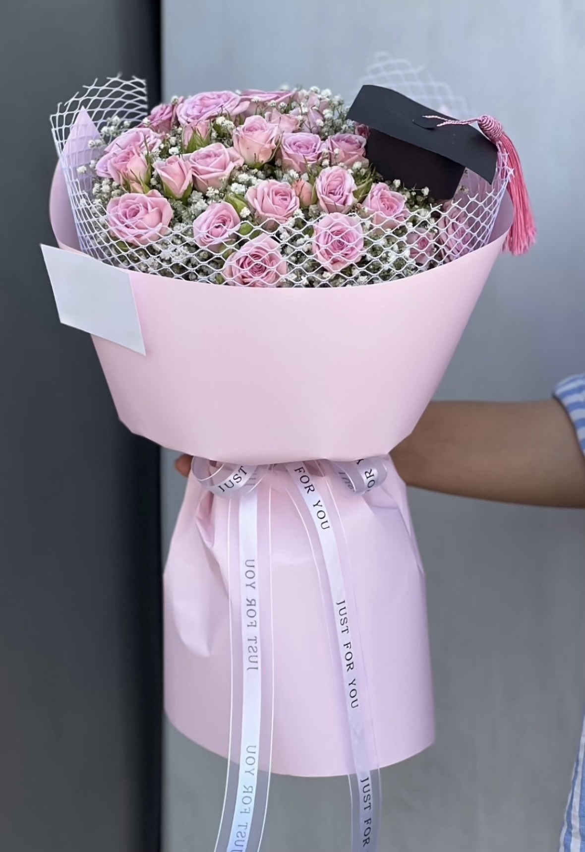 دسته گل فارغ التحصیلی با رز مینیاتوری صورتی🌸
