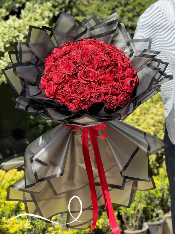 دسته گل ۶۰ شاخه رز قرمز شاین دار❤️✨