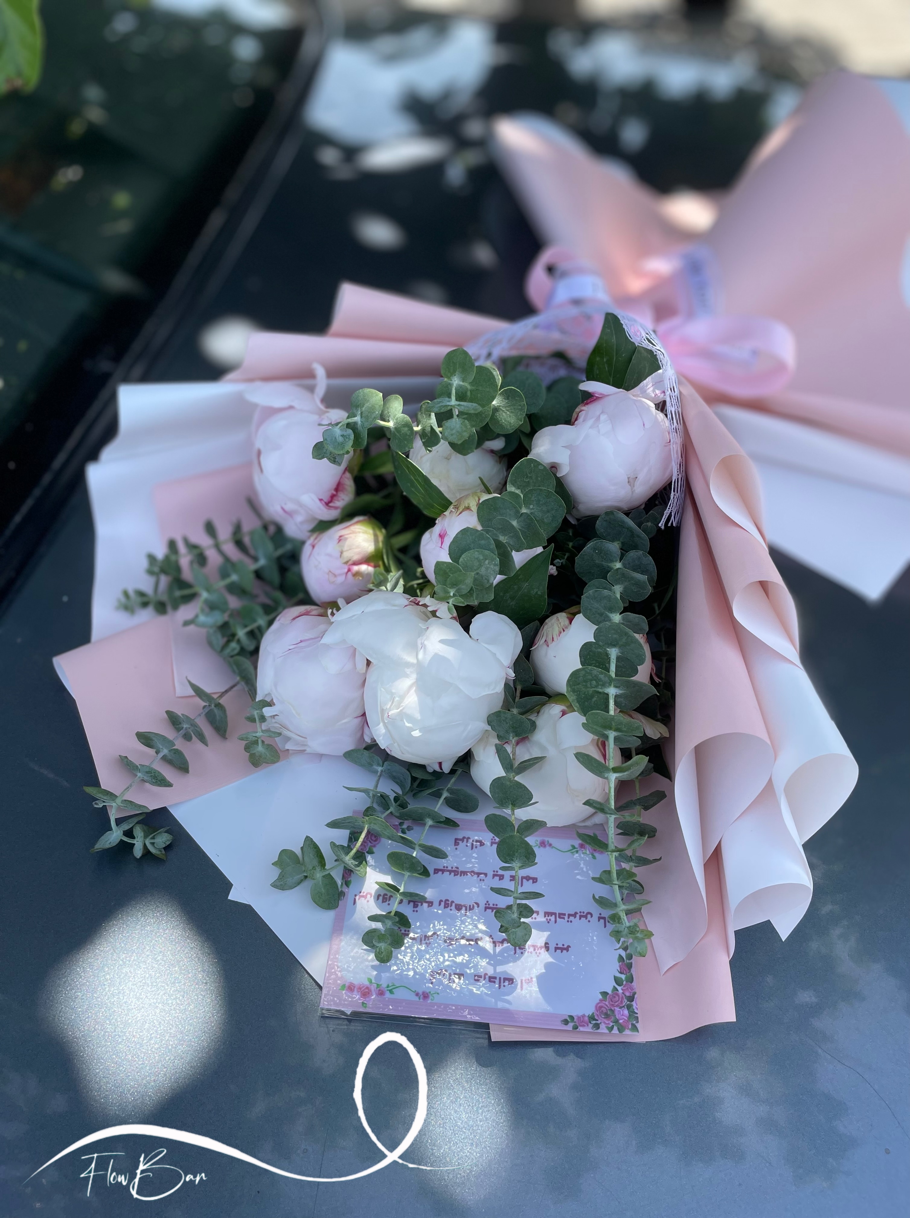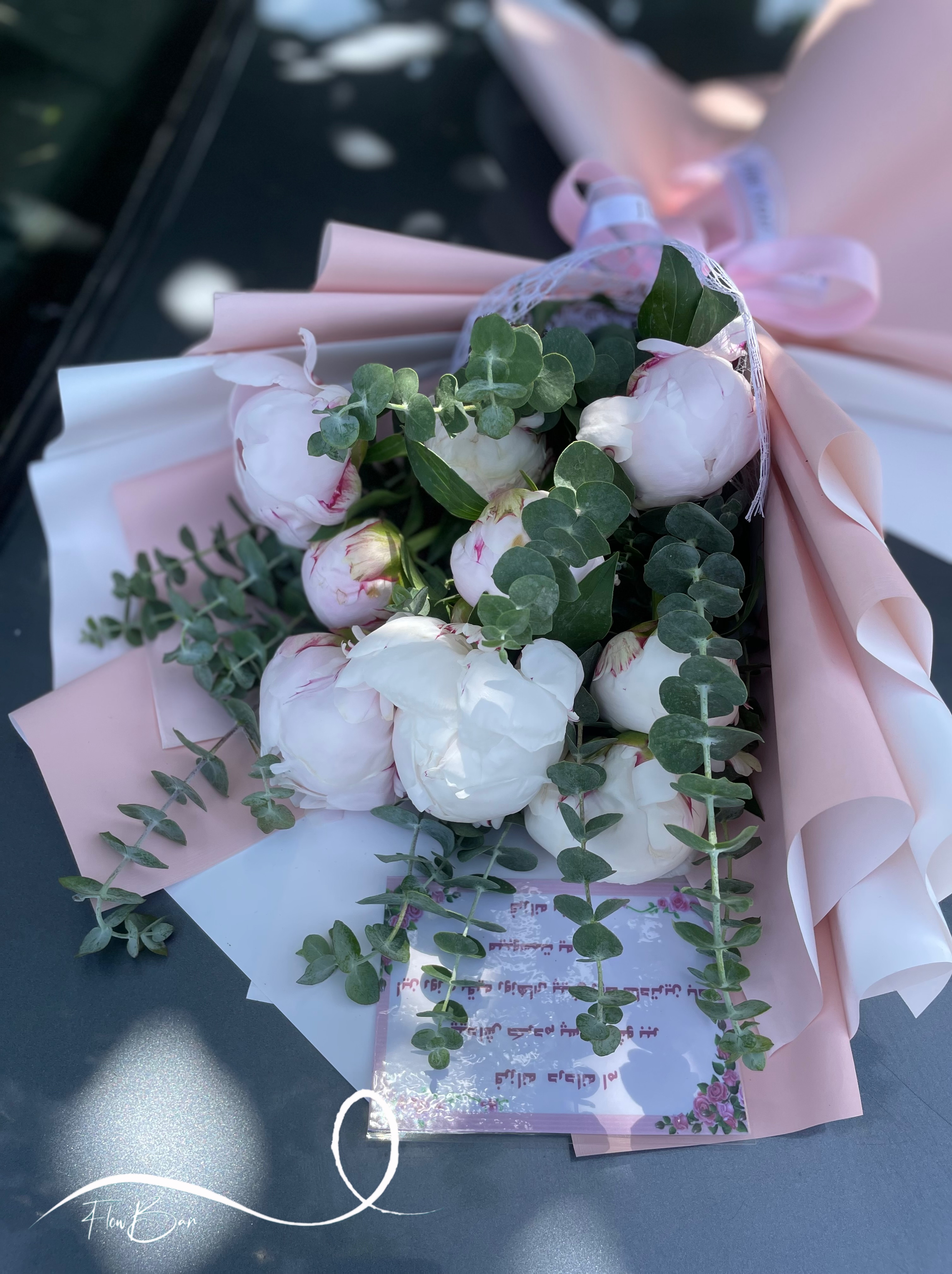 دسته گل پیونی یا گل صدتومنی🤍🩷