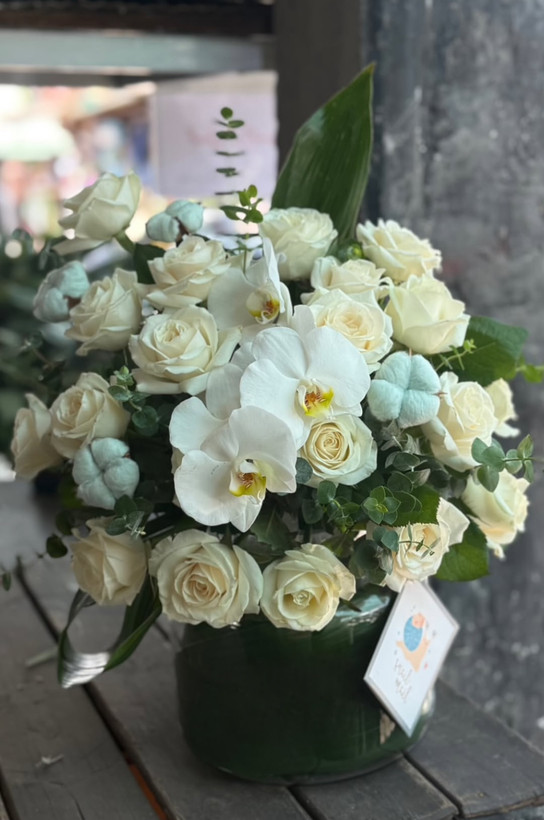 گل رز سفید داخل جار گل فلوبار