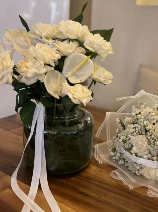 گل رز سفید داخل جار گل فلوبار