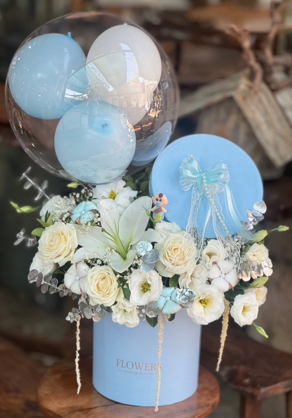 باکس گل و بادکنک نوزادی پسرونه فلوبار