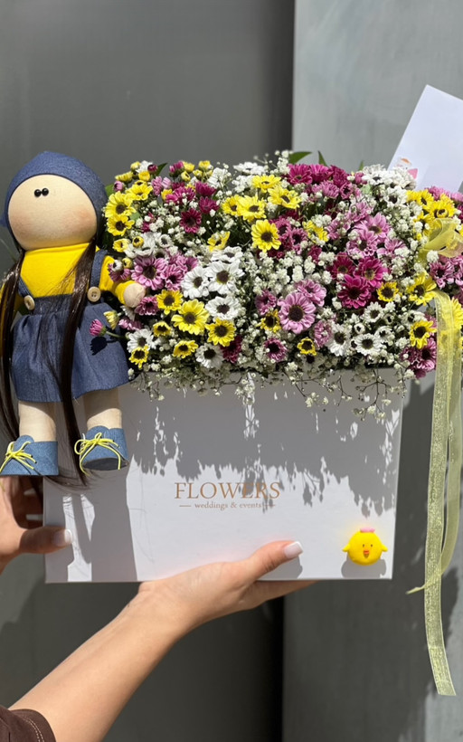 باکس گل و عروسک نوزادی دخترونه فلوبار