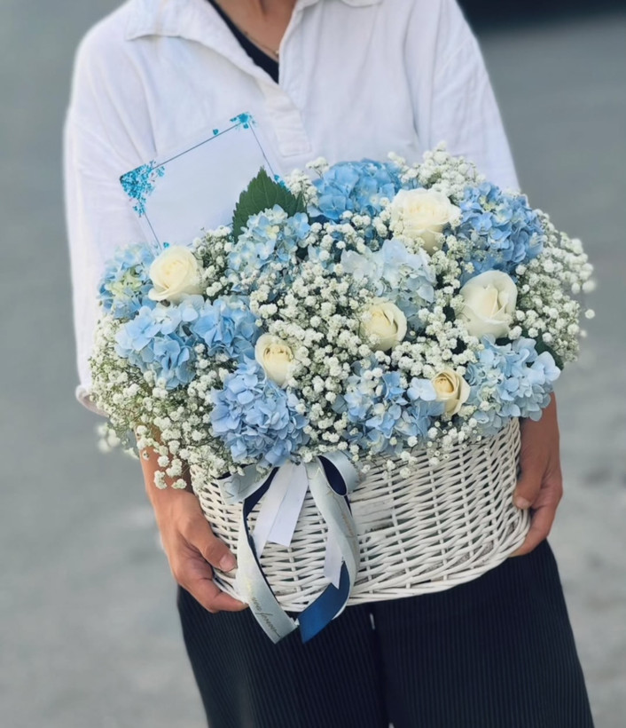 سبد گل هورتانسیا آبی به این ملیحی🩵