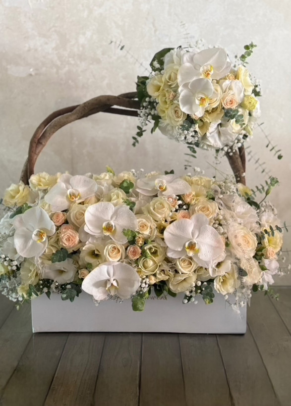 باکس گل دو طبقه سفید گلبهی خواستگاری فلوبار