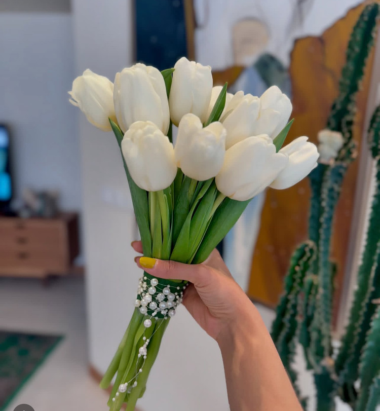 دسته گل عروس با لاله مصنوعی فلوبار