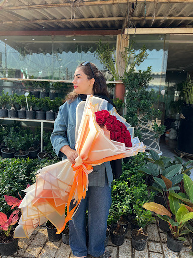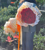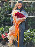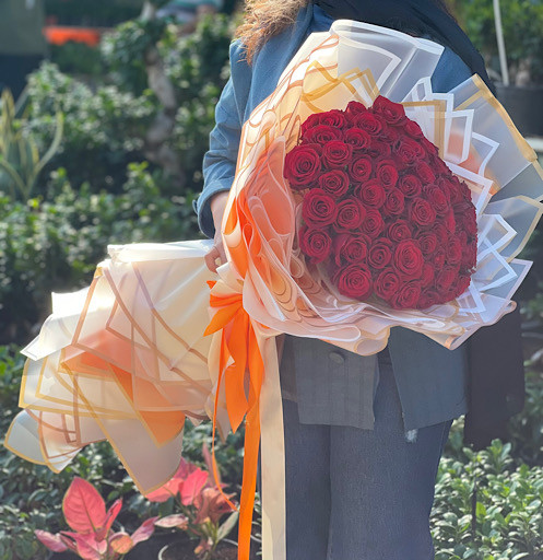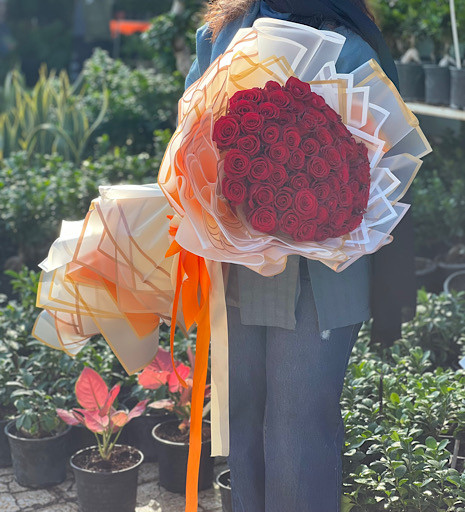 دسته گل ۸۰ شاخه رز قرمز فلوبار