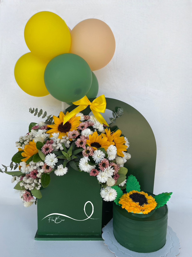 باکس گل و کیک تولد با تم آفتابگردون فلوبار