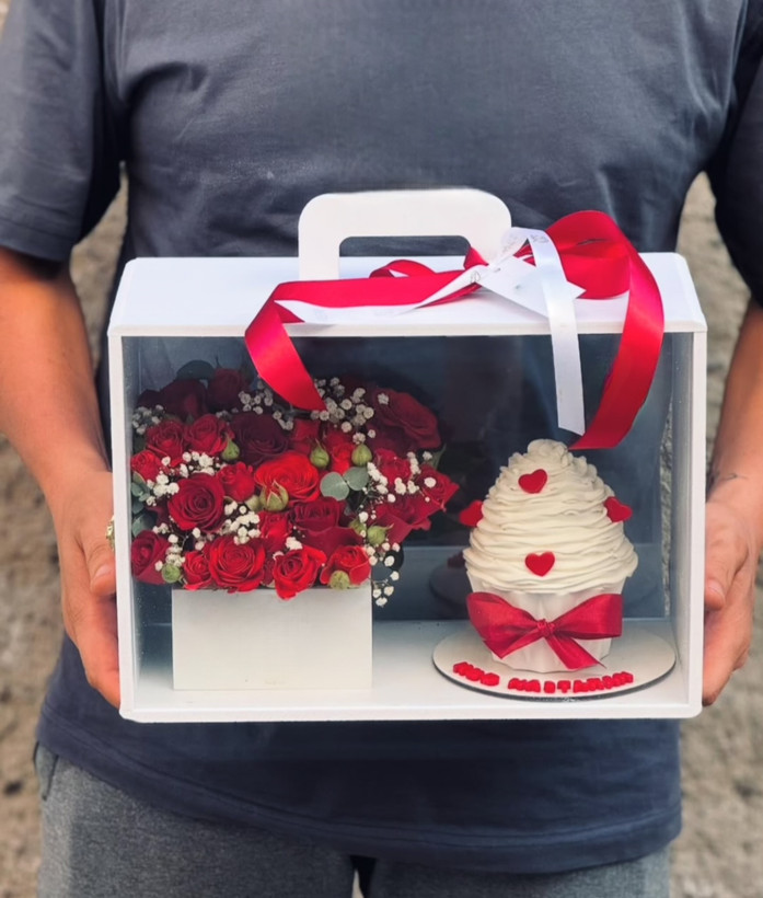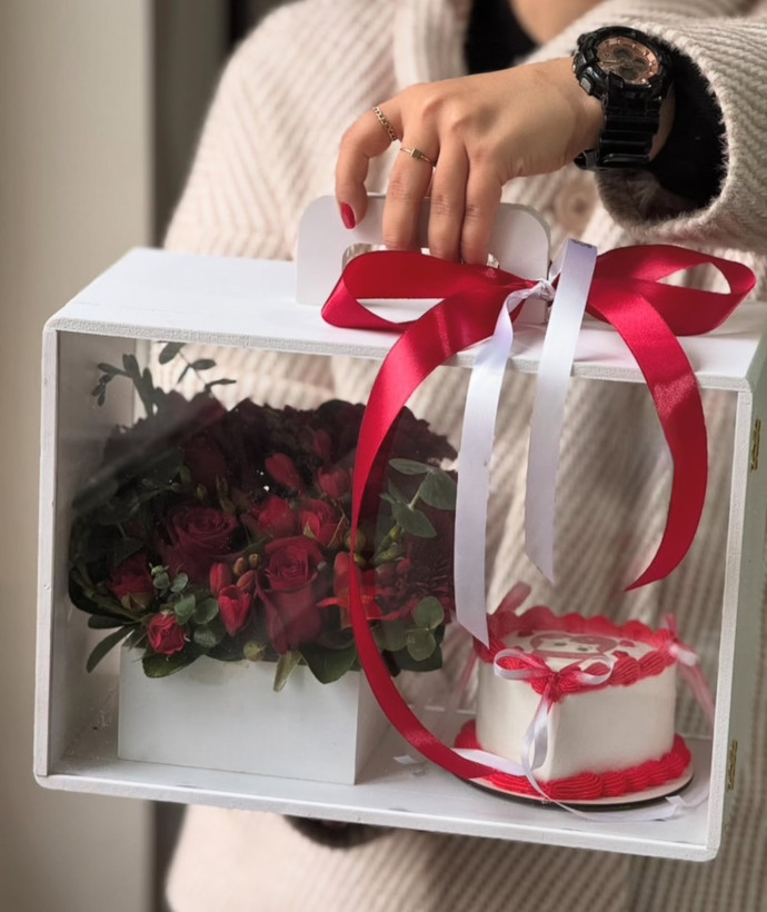 باکس گل و کیک تولد قرمز فلوبار