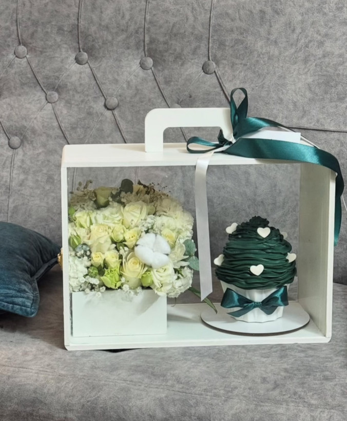 باکس گل و کیک تولد سبز فلوبار