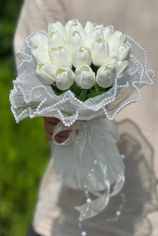 ۲۰ شاخه لاله مصنوعی لمسی به همراه تور برفی🤍