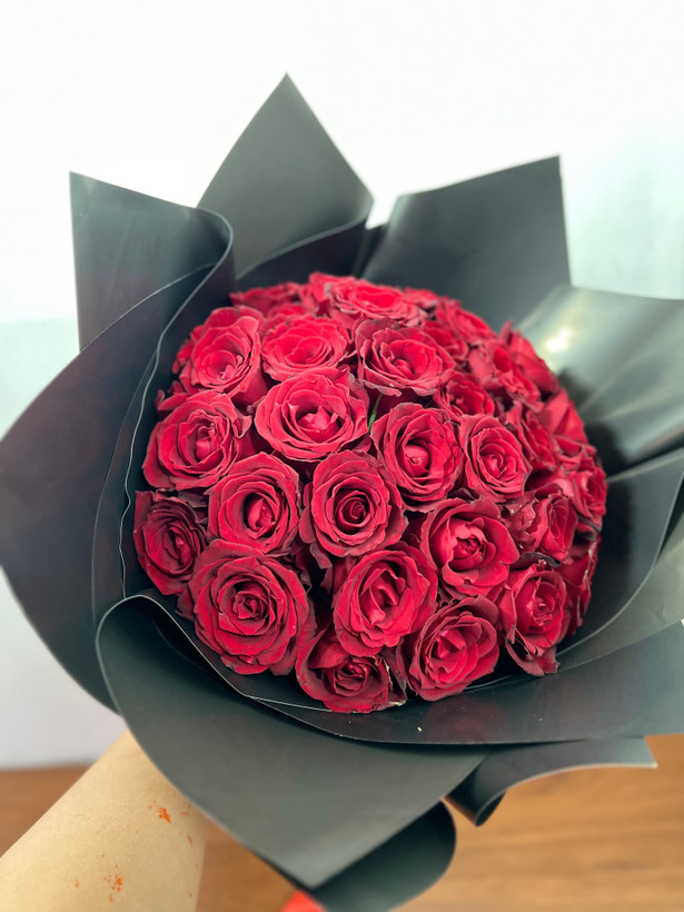 دسته گل ۴۰ شاخه رز قرمز فلوبار