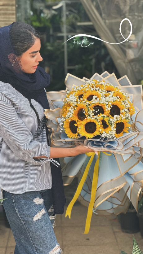 دسته گل آفتابگردون ترکیب با ژیپسوفیلا🌻