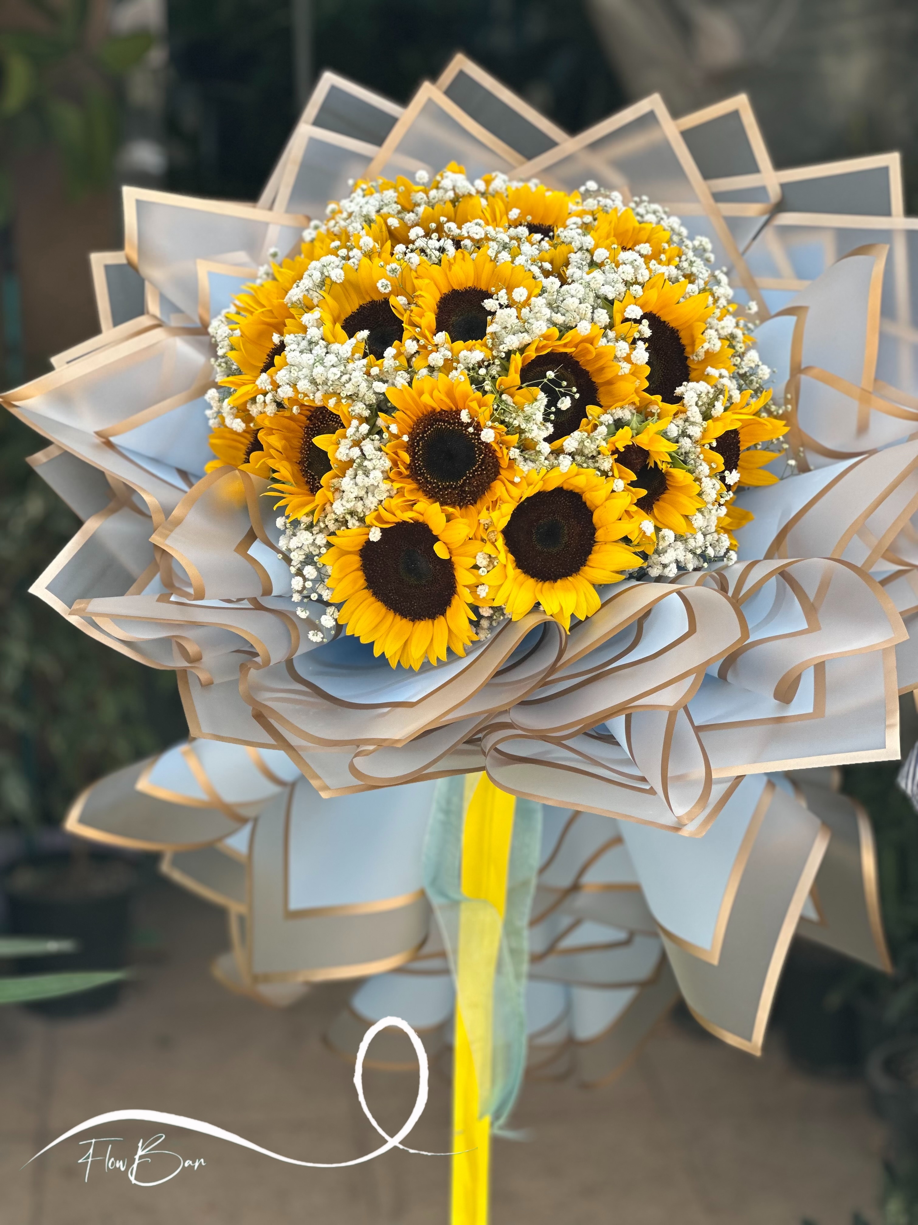 دسته گل آفتابگردون ترکیب با ژیپسوفیلا🌻