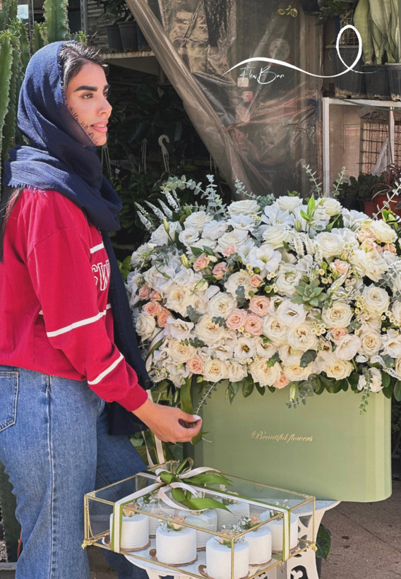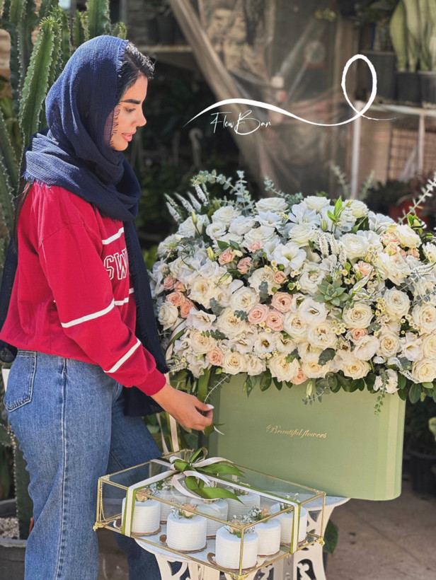 • باکس گل یا دسته گل معمولاً از طرف خانواده داماد به عروس تقدیم میشود و نوع گل انتخابی نیز اهمیت دارد؛ مثلاً رز سفید نماد عشق پاک و ماندگار است.