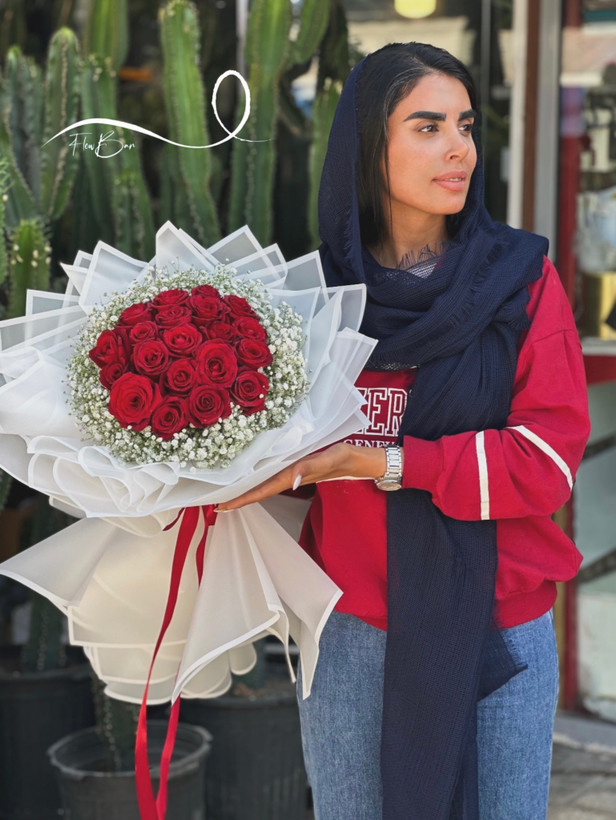دسته گل ۲۰ شاخه رز قرمز به همراه ژیپسوفیلا❤️