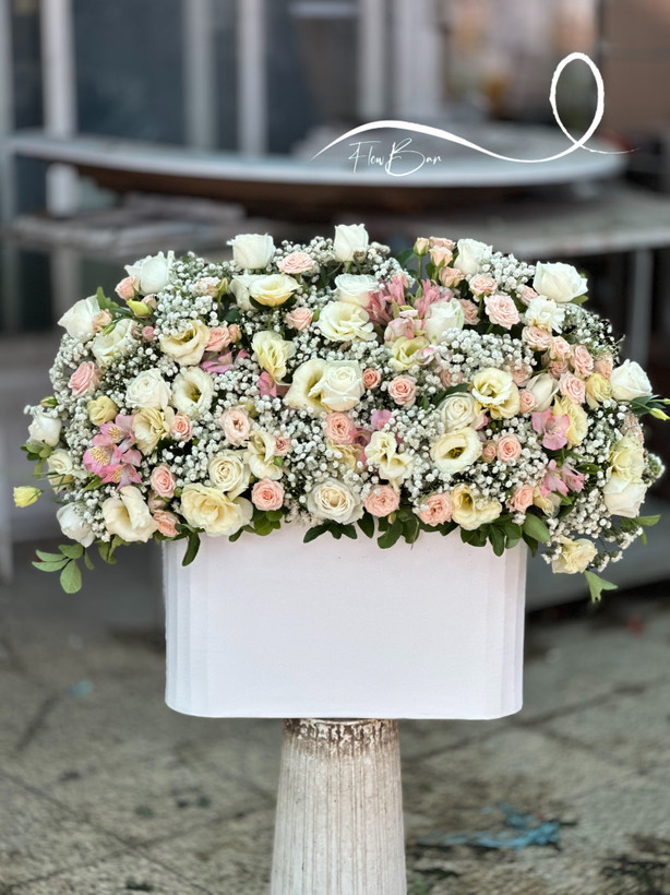 باکس گل خواستگاری رز سفید گلبهی فلوبار