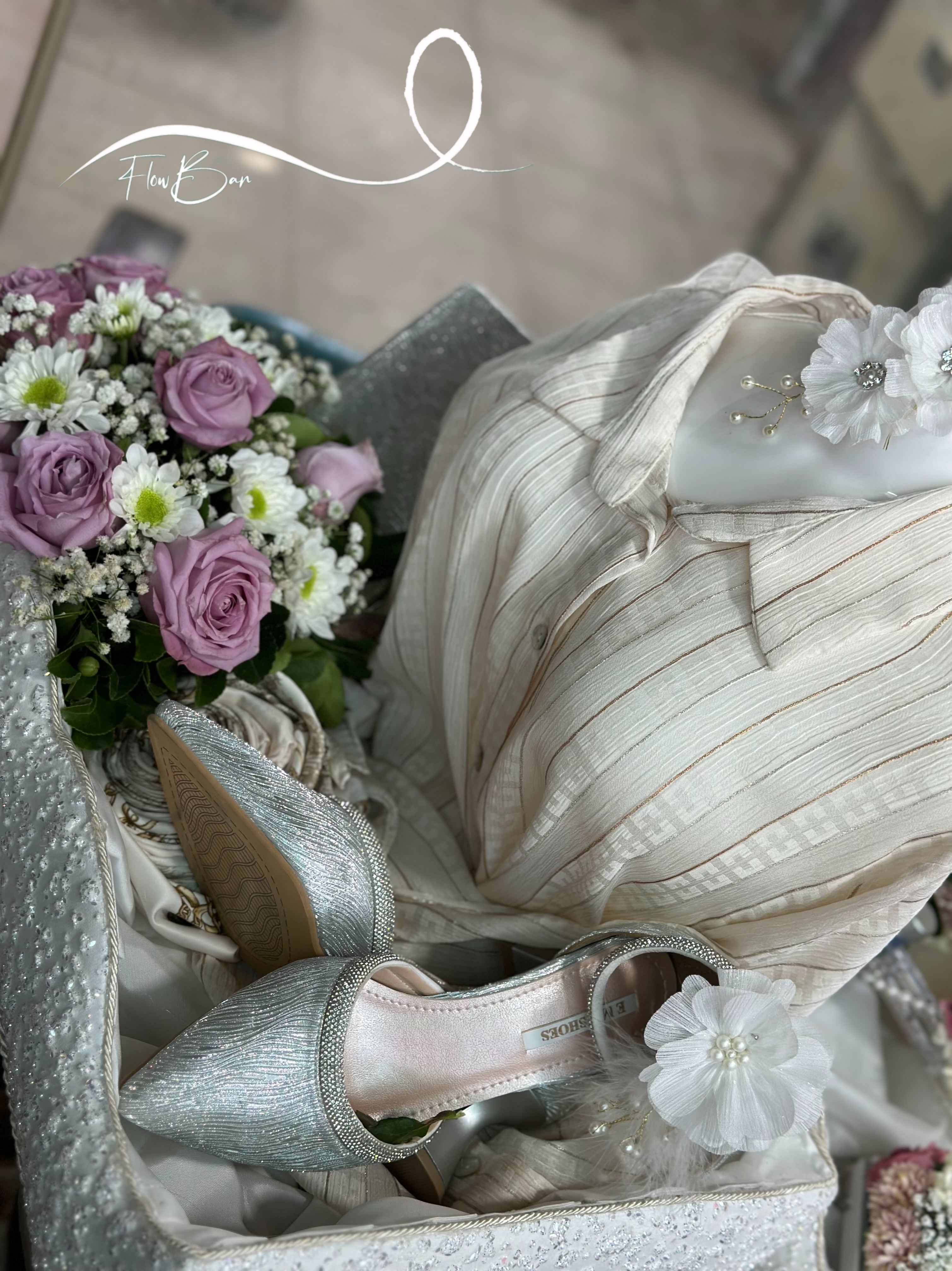 گلارایی و دیزاین لباس عروس داخل طبق مخملی🌸