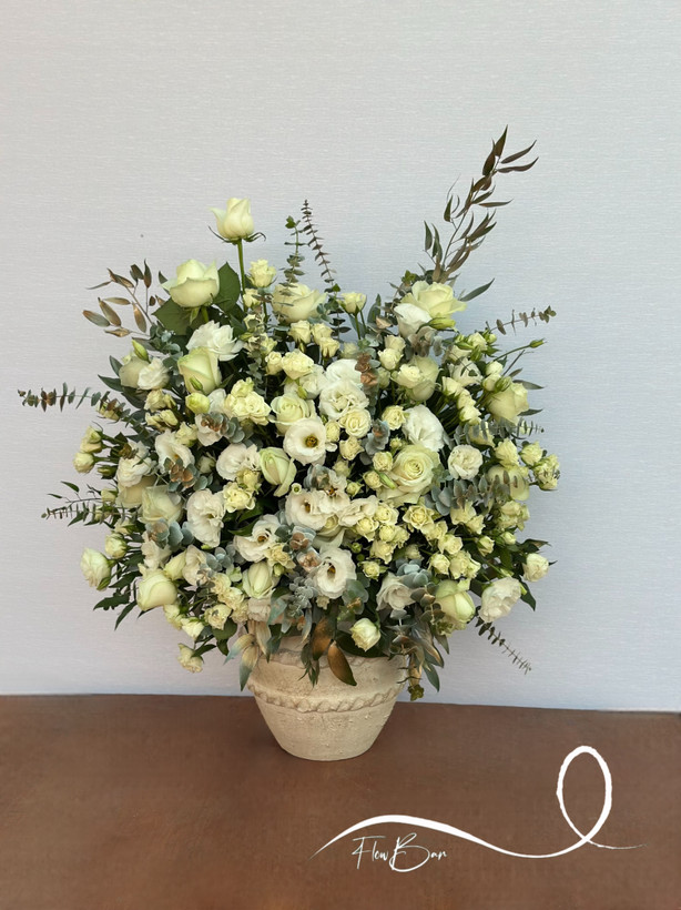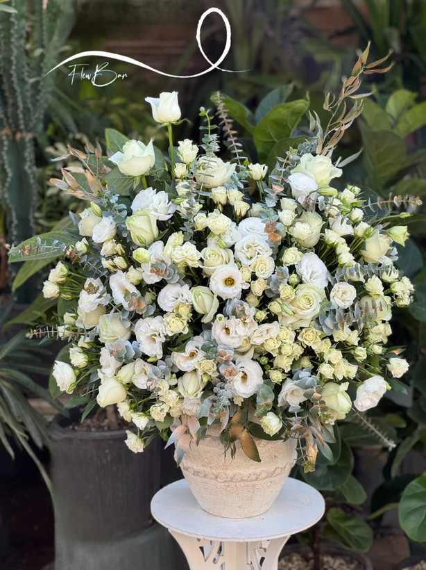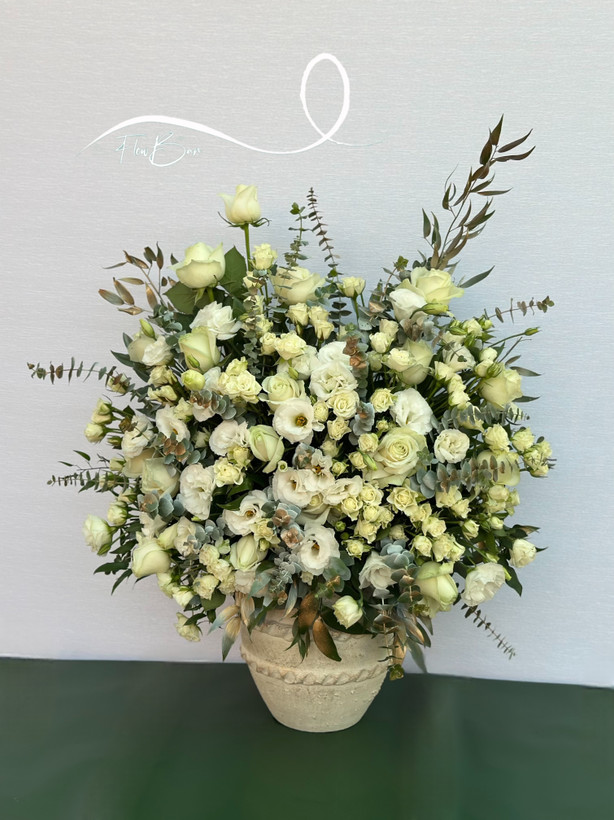چیدمان گل های رز و لیسینتوس داخل کوزه سفالی آنتیک✨