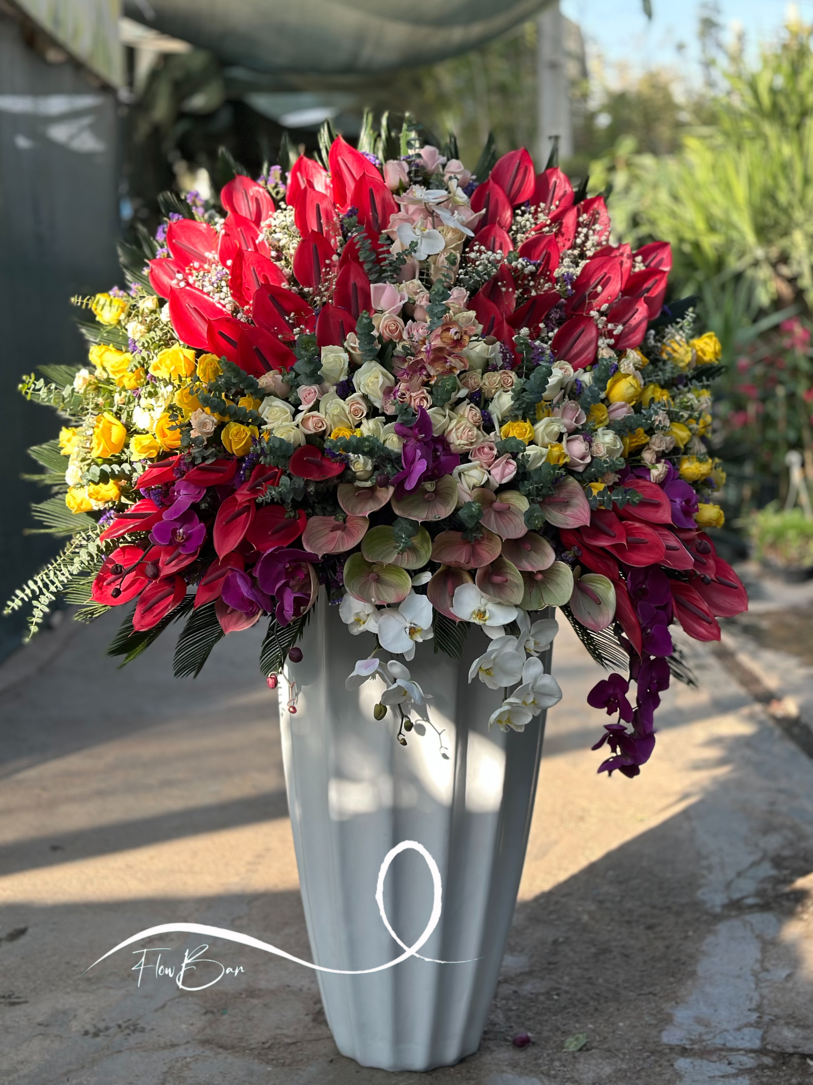 گلهای لوکس آنتریوم، ارکیده، رز هلندی، رز مینیاتوری، ژیپسوفیلا و اکالیپتوس🤍