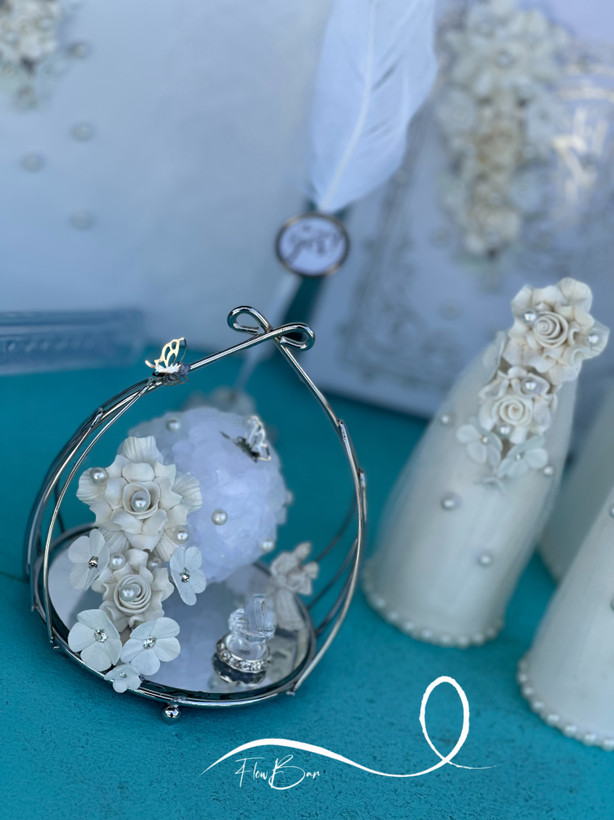 جام یا ظرف کوچک عسل که نشانه شیرینی و برکت در زندگی مشترک است. این ظرف هم معمولاً با گل، روبان و اکسسوریهای شیک دیزاین میشود.
