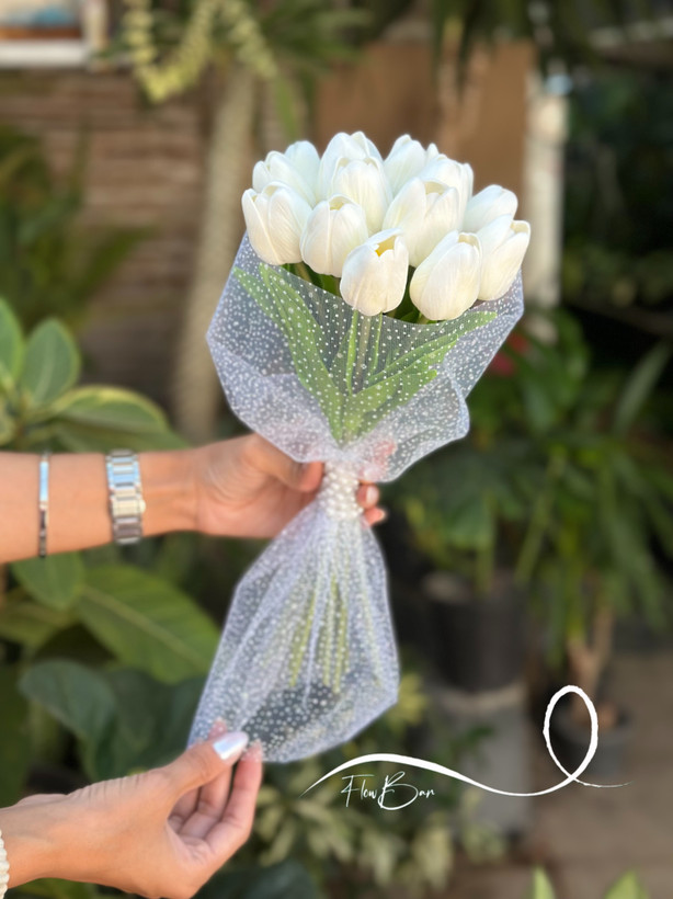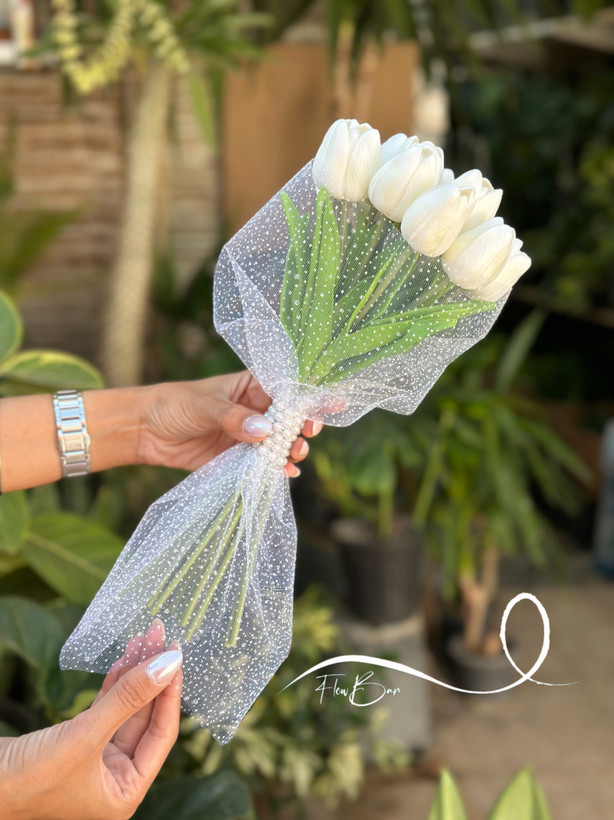 ۲۰ شاخه لاله مصنوعی لمسی به همراه تور برفی🤍
