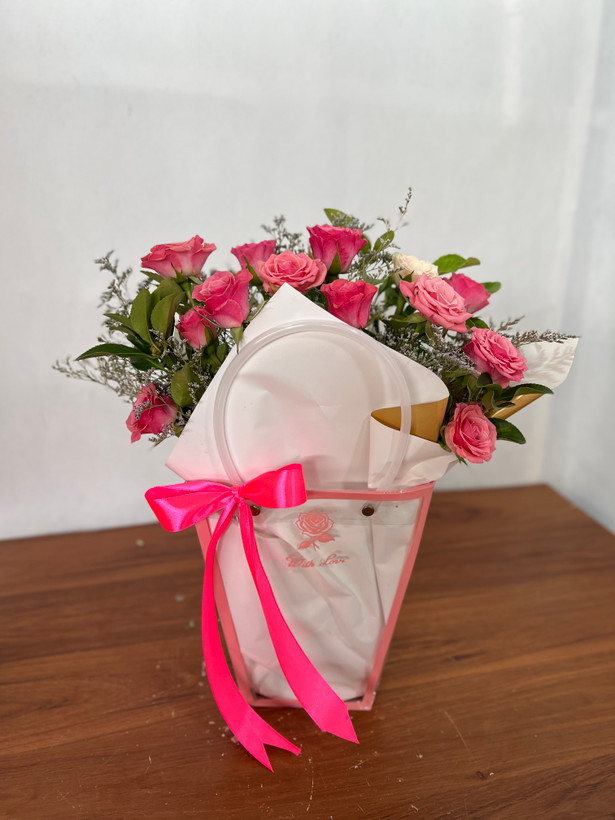 گل رز مینیاتوری داخل فلاوربگ کاغذی فلوبار