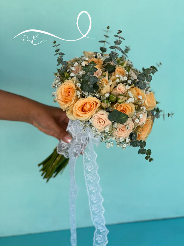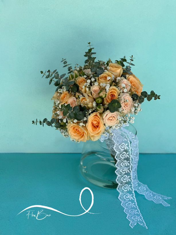 گل رز هلندی و رز مینیاتوری گلبهی ترکیب با ژیپسوفیلا و اکالیپتوس🤍