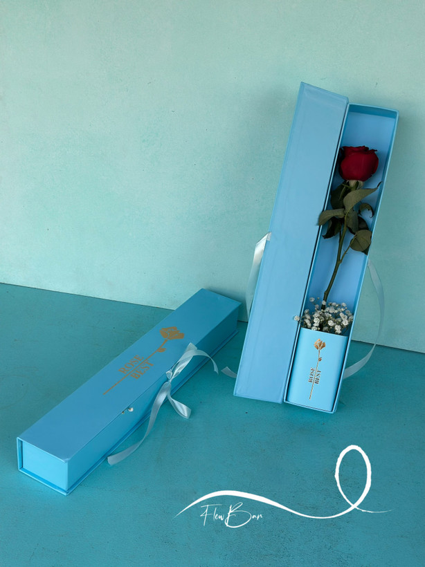 تک شاخه گل رز به همراه ژیپسوفیلا داخل باکس🌹