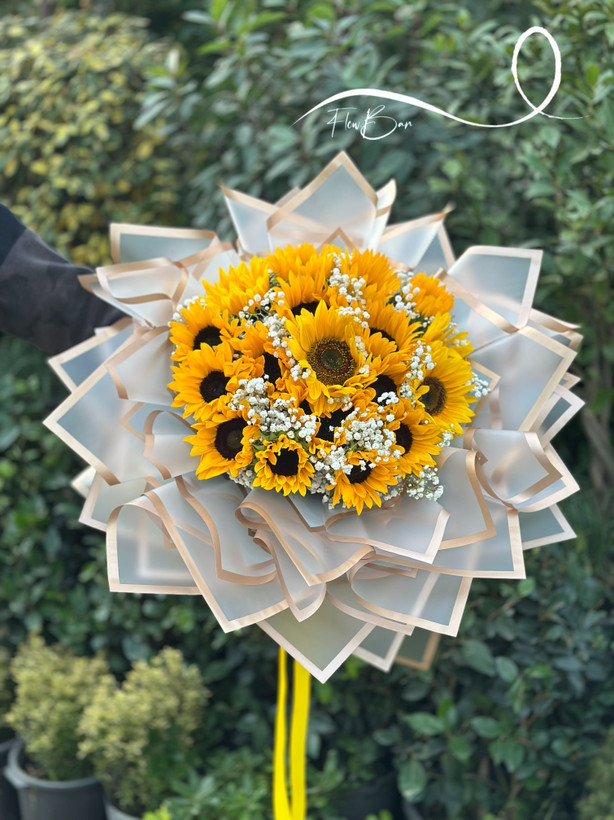 دسته گل آفتابگردون ترکیب با ژیپسوفیلا🌻