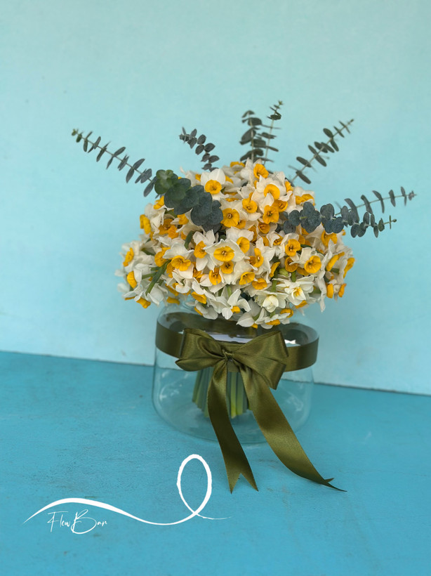 گل نرگس و اکالیپتوس داخل جار گل فلوبار
