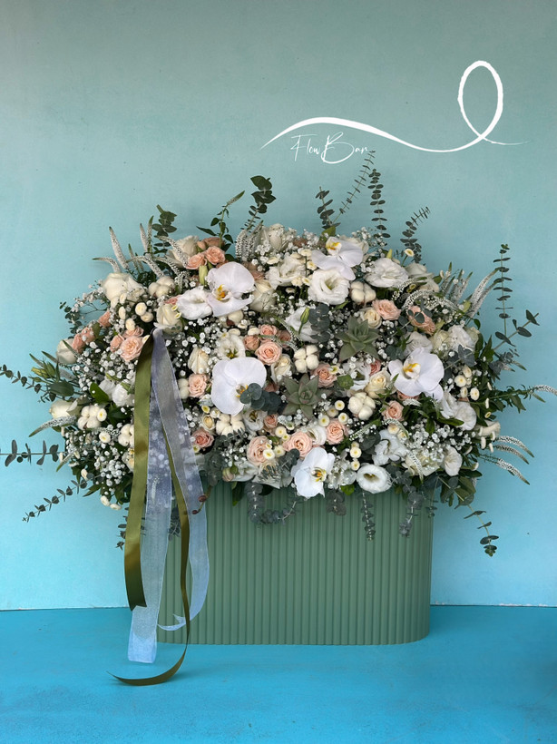 باکس گل رز و ارکیده سفید سبز فلوبار