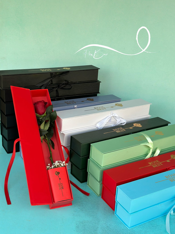 تک شاخه گل رز به همراه ژیپسوفیلا داخل باکس🌹