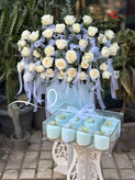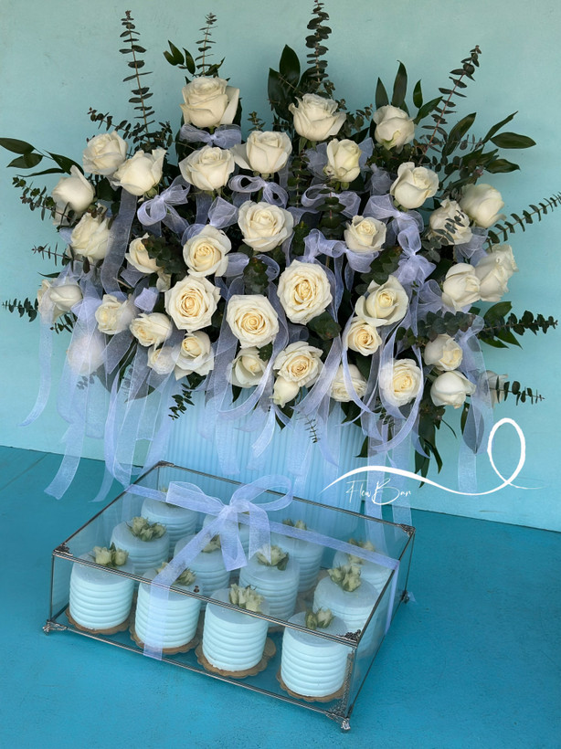 باکس گل و کاپ کیک خواستگاری سفید آبی فلوبار