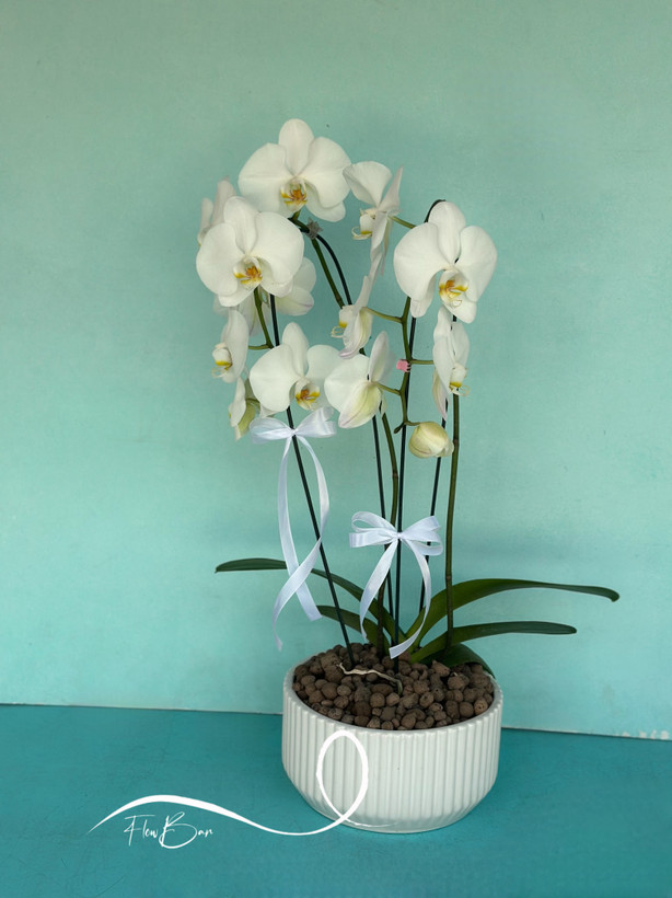 گلدان ارکیده سفید دو شاخه🤍