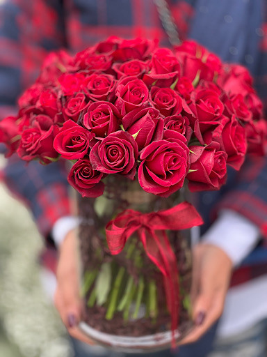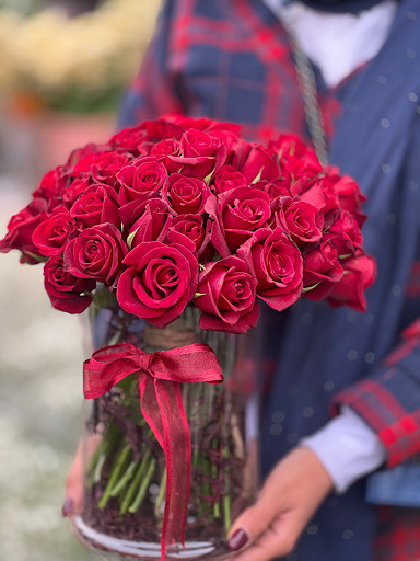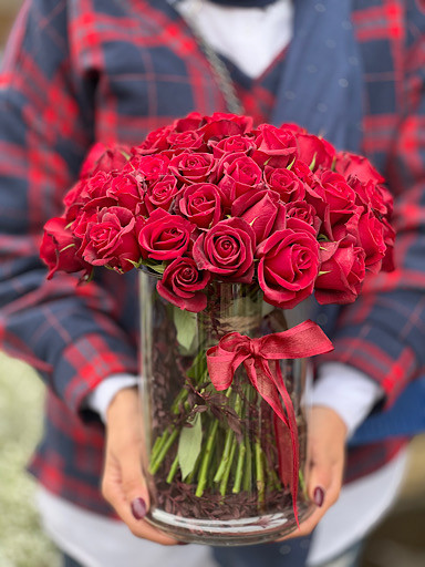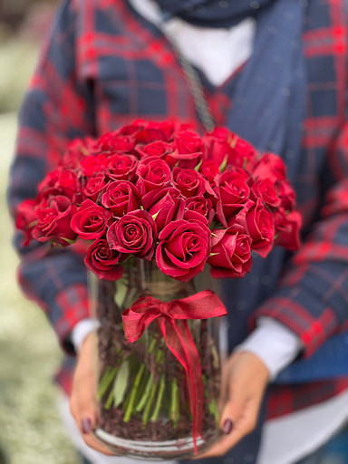 گل رز قرمز داخل جار گل فلوبار